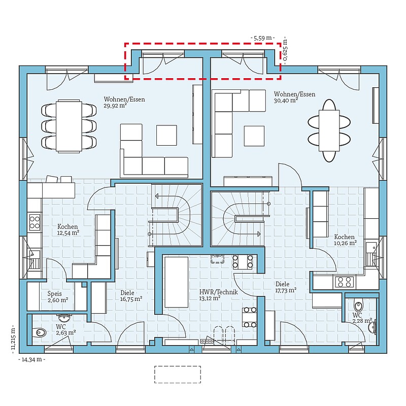 | Wohnfläche Einheit Rechts | 126,92 m² |