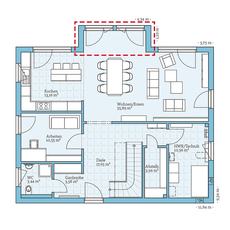 Mit 184 m² Grundfläche bietet auch dieses Haus aus der Hanse Haus Serie Variant grosszügigen Raum für die ganze Familie.