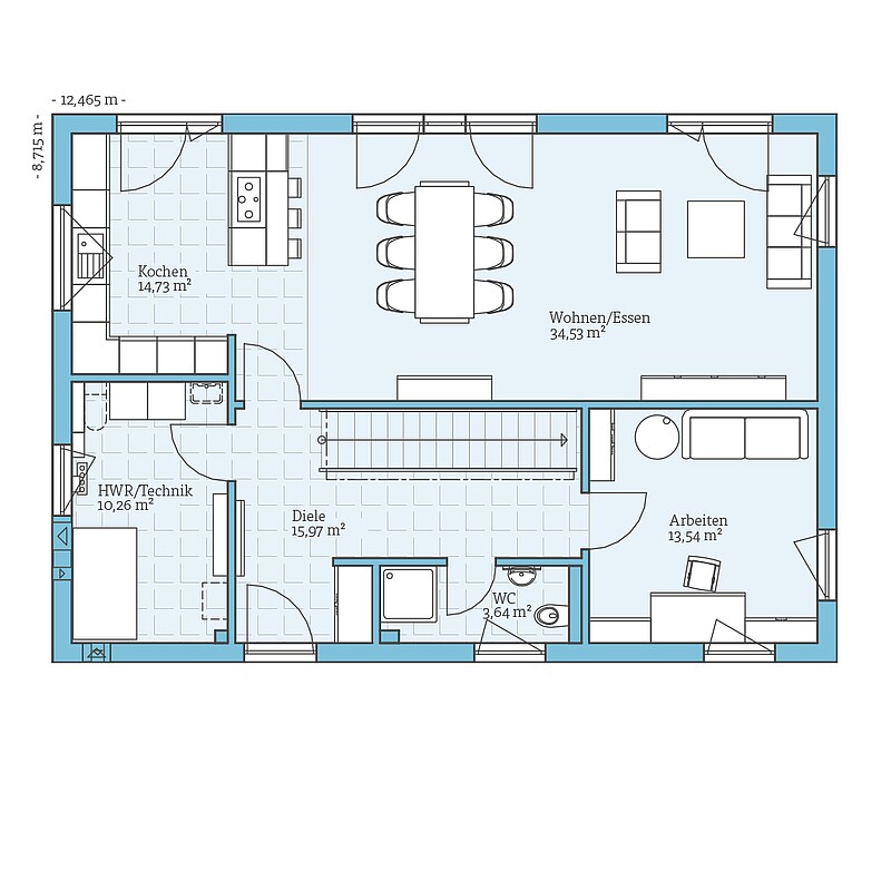 Wahlweise können Sie statt des dritten Kinderzimmers über dem Essbereich auch einen Luftraum einplanen, der zusätzliche Grosszügigkeit vermittelt.