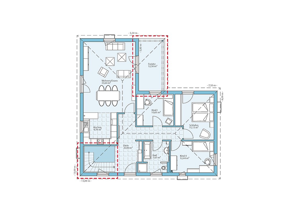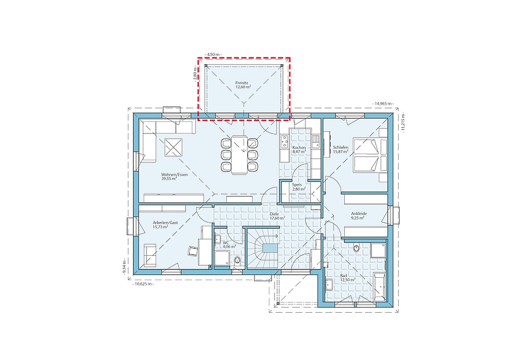 Es ist nicht immer leicht, den perfekten Grundriss für sich selbst zu finden. Daher haben wir eine Vielzahl an Vorschlagsentwürfen für Sie konzipiert. Doch natürlich planen wir Ihr Haus nach Ihren Wünschen und Bedürfnissen. Die Liste der Grundrisse ist der Gesamtgröße nach aufsteigend sortiert.