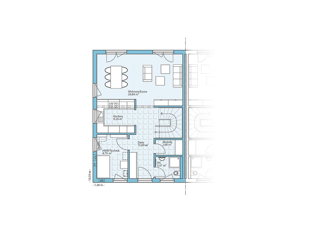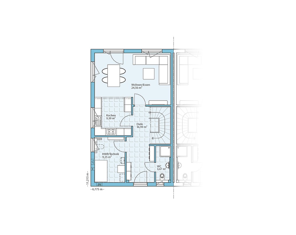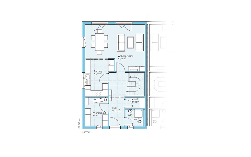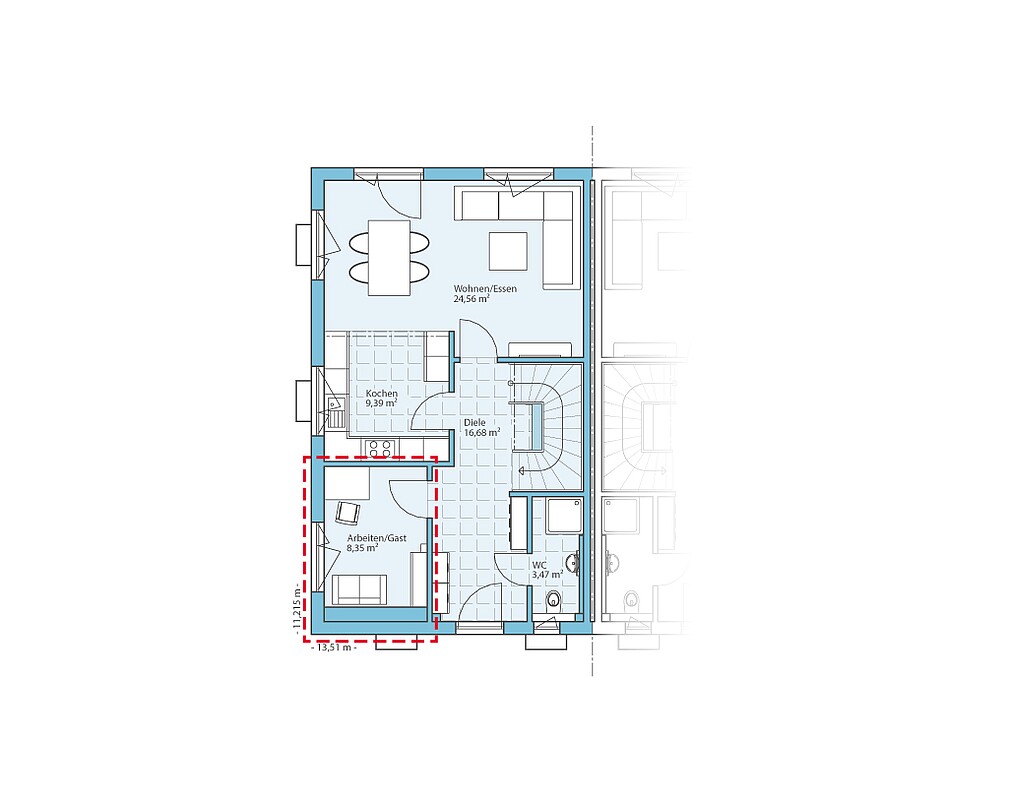 - Je breiter das Haus, desto kleiner ist die fensterlose Wand zum Nachbarn und desto heller können Sie Ihren Lebensraum gestalten.