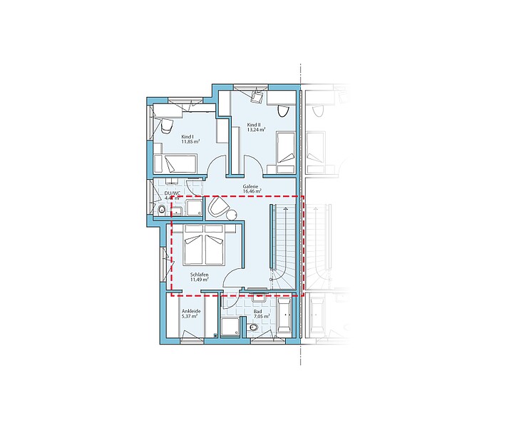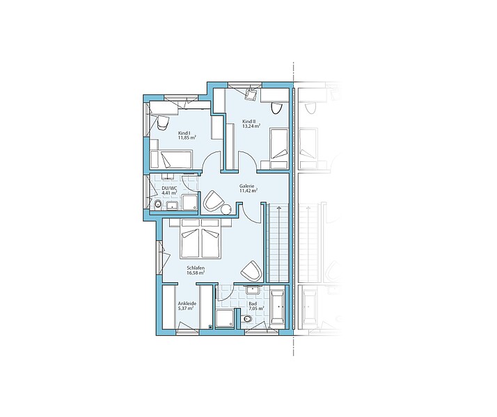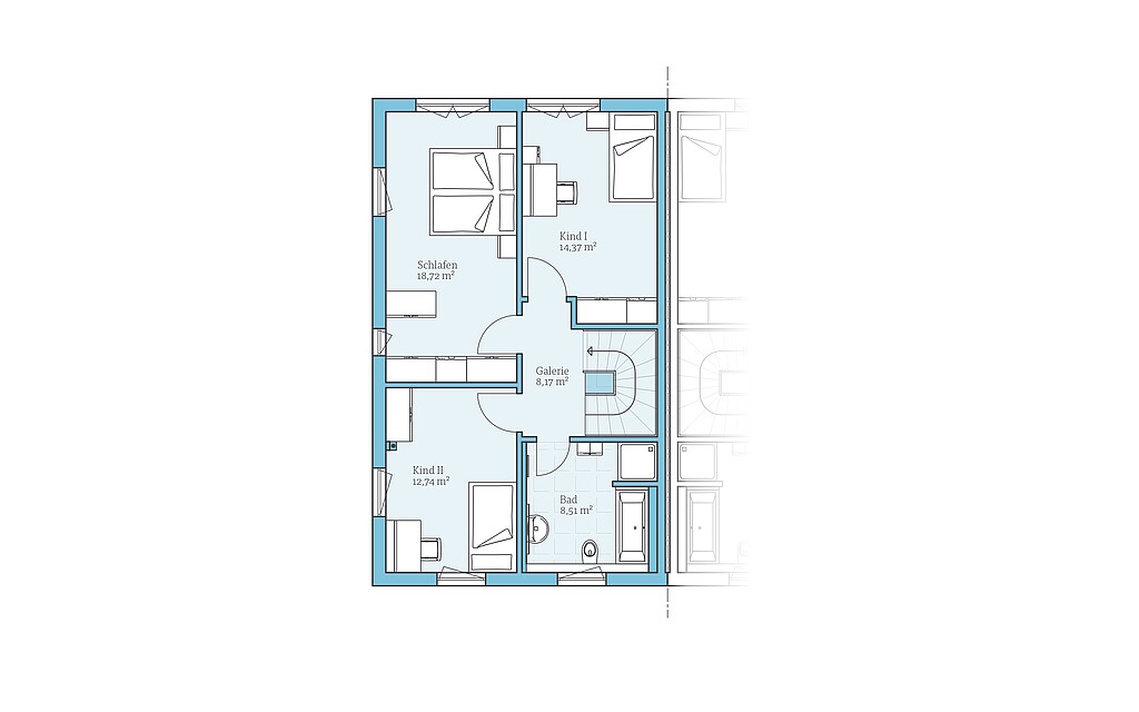 - Um Problemen mit dem Schallschutz aus dem Weg zu gehen, sollten die Schlafzimmer nicht an der Trennwand geplant werden.