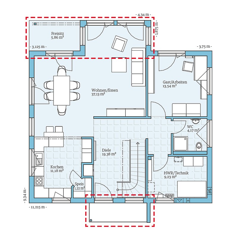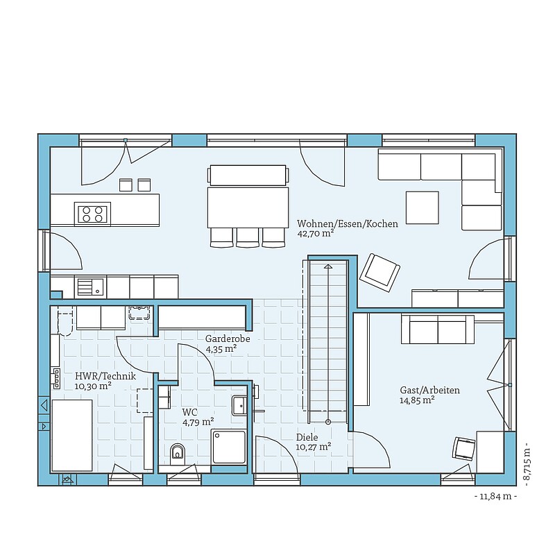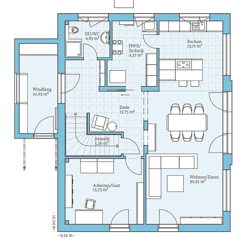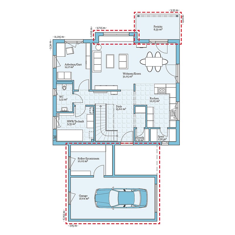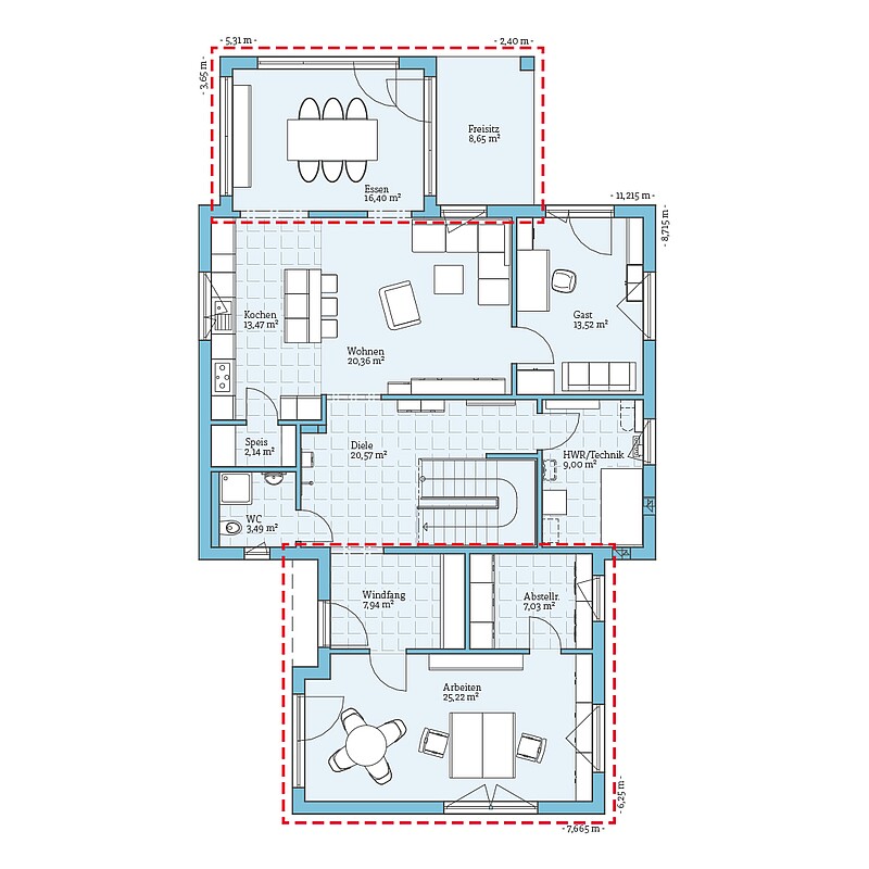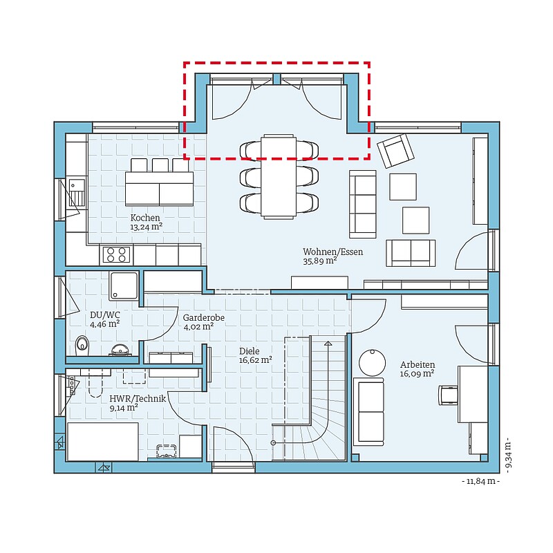 183 m² Grundfläche | Planungsoptionen mit Windfang und Luftraum über dem Essbereich