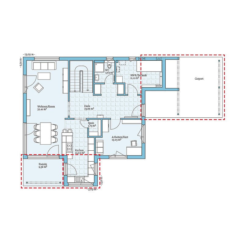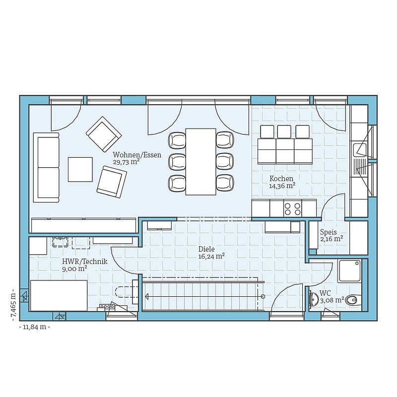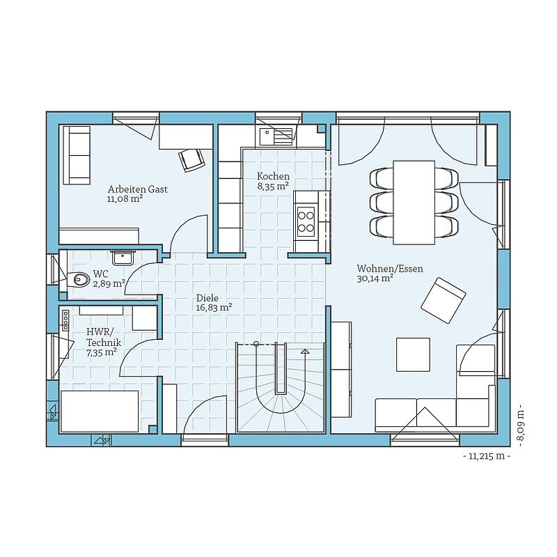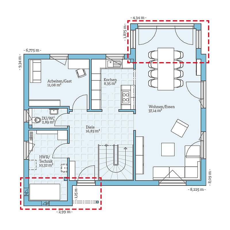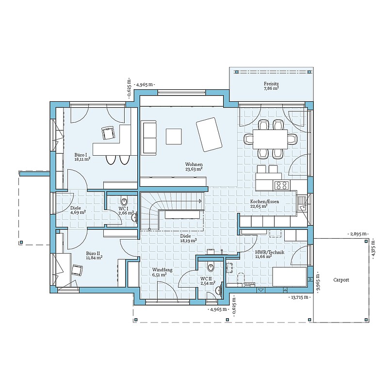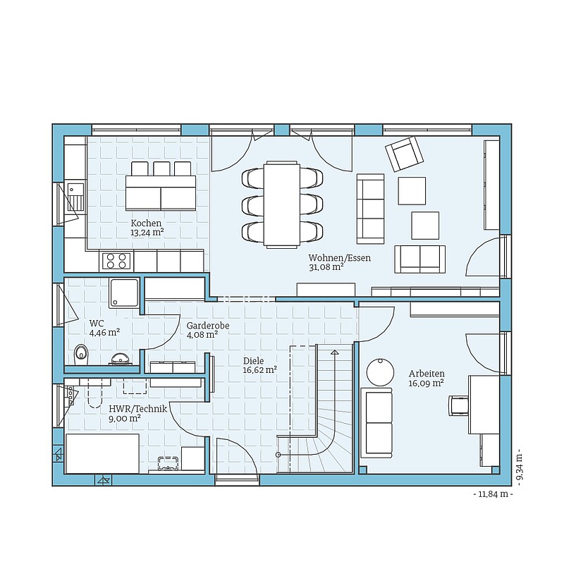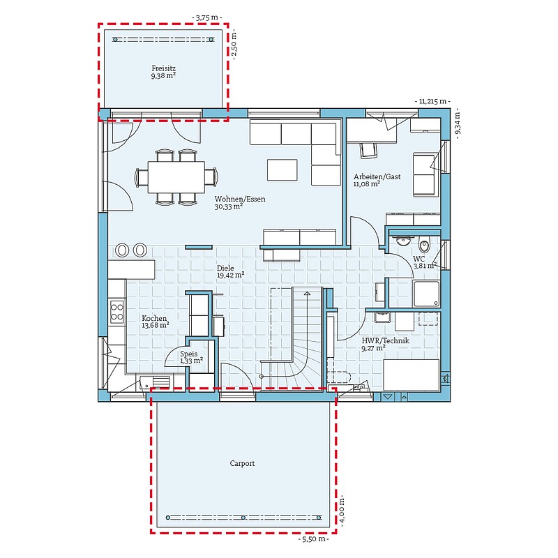 183 m² Grundfläche | Planungsoptionen mit Windfang und Luftraum über dem Essbereich