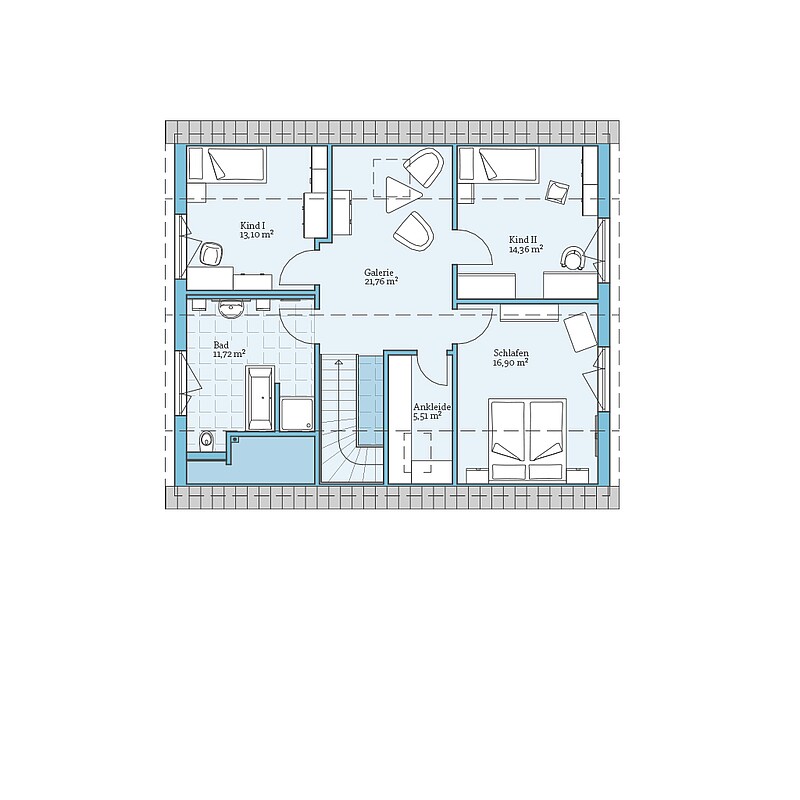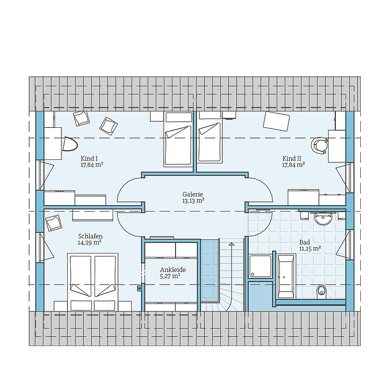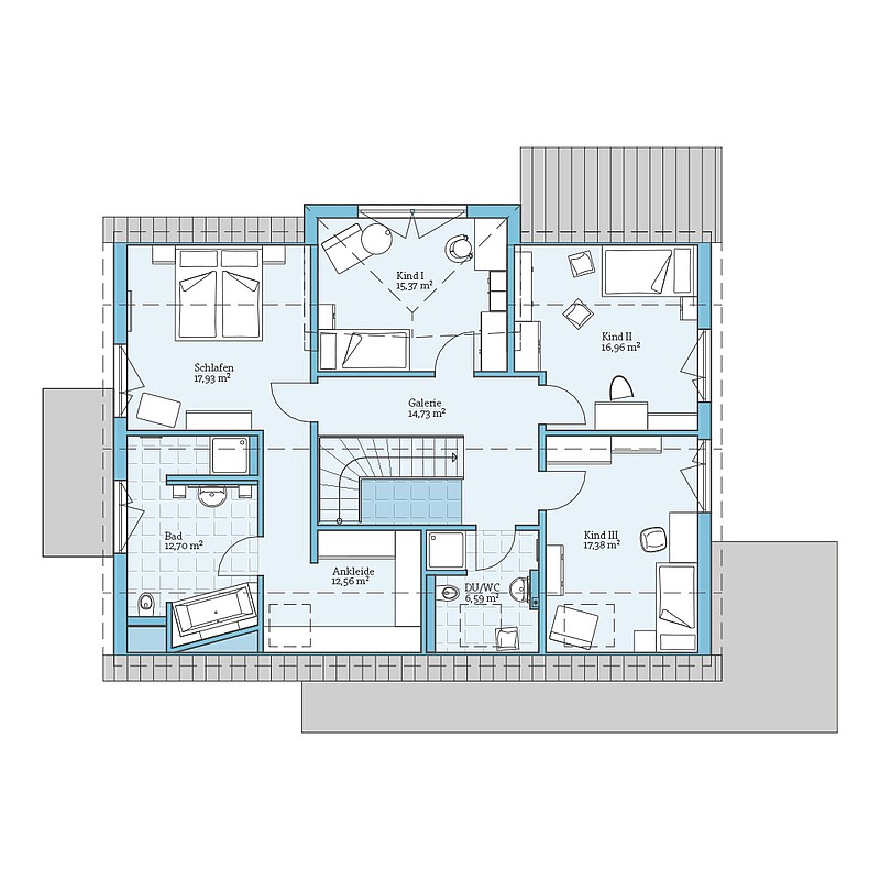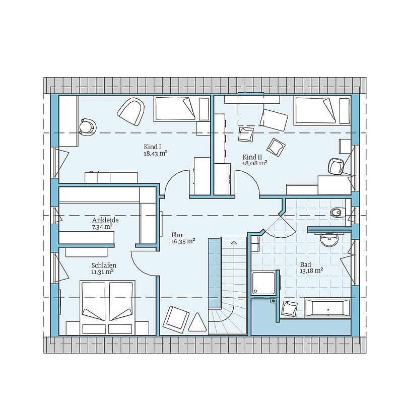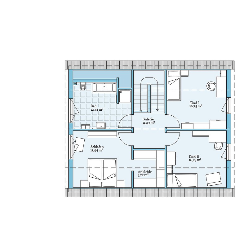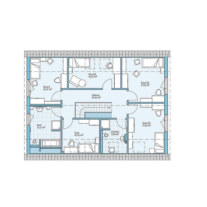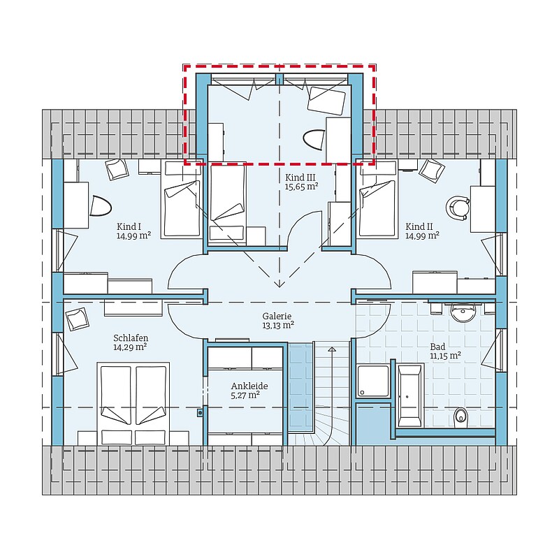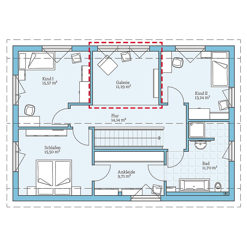- Spielen Ihre Kinder eher in ihrem eigenen Zimmer? Planen Sie die Größe der Zimmer entsprechend. Schaffen Sie alternativ Spielzimmer oder planen Sie genügend Platz in Fluren oder Galerien ein.
