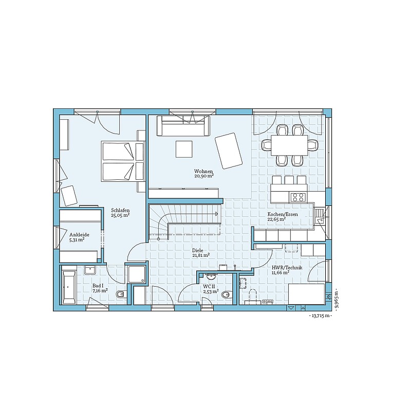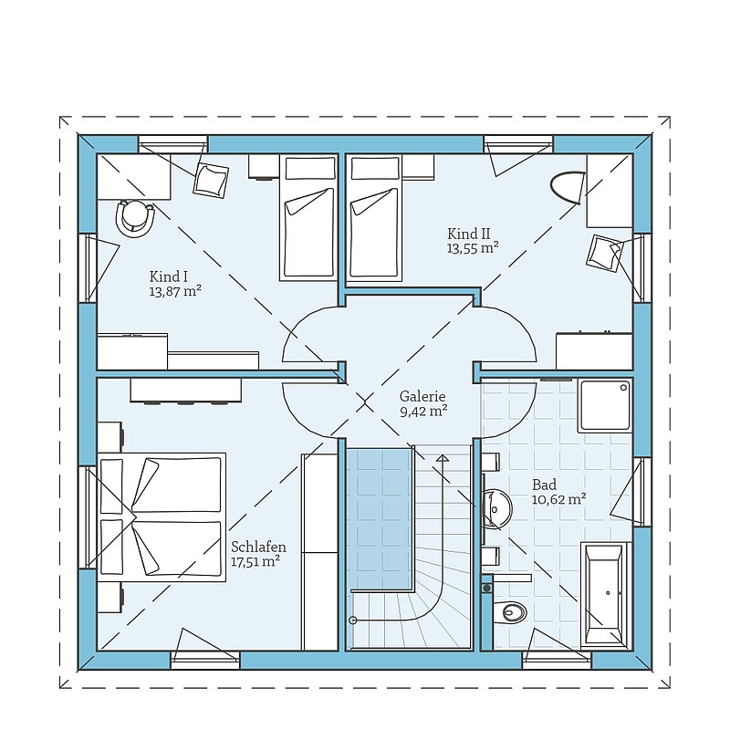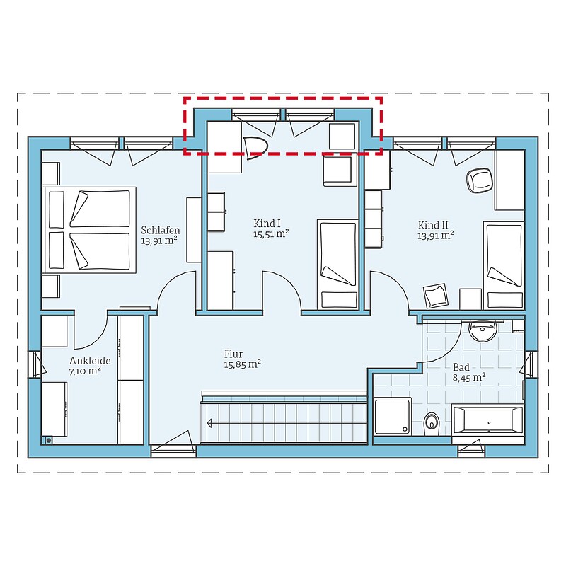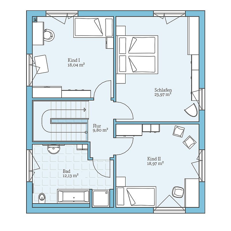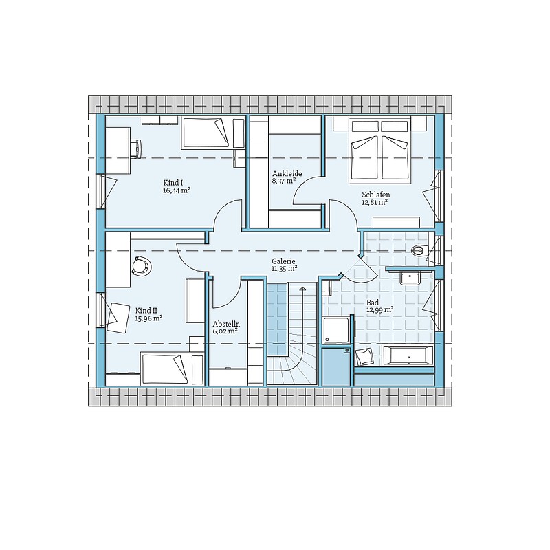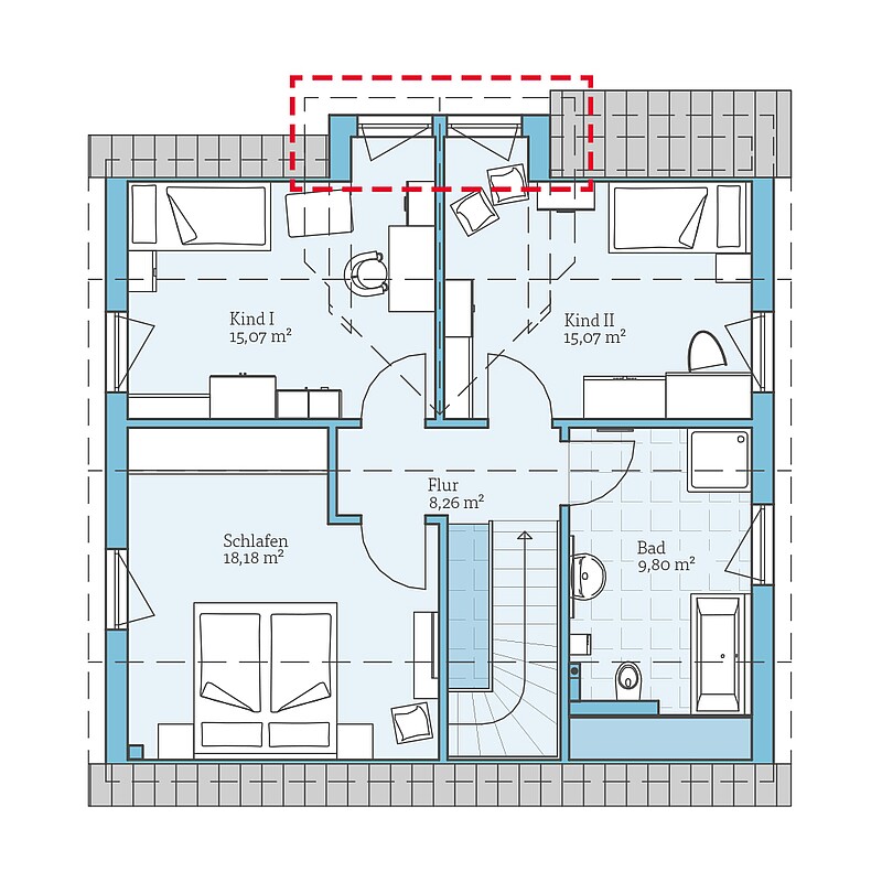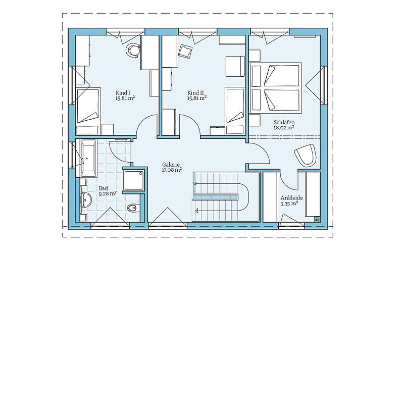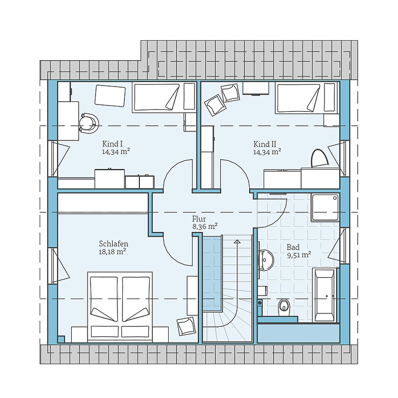 - Spielen Ihre Kinder eher in ihrem eigenen Zimmer? Planen Sie die Größe der Zimmer entsprechend. Schaffen Sie alternativ Spielzimmer oder planen Sie genügend Platz in Fluren oder Galerien ein.