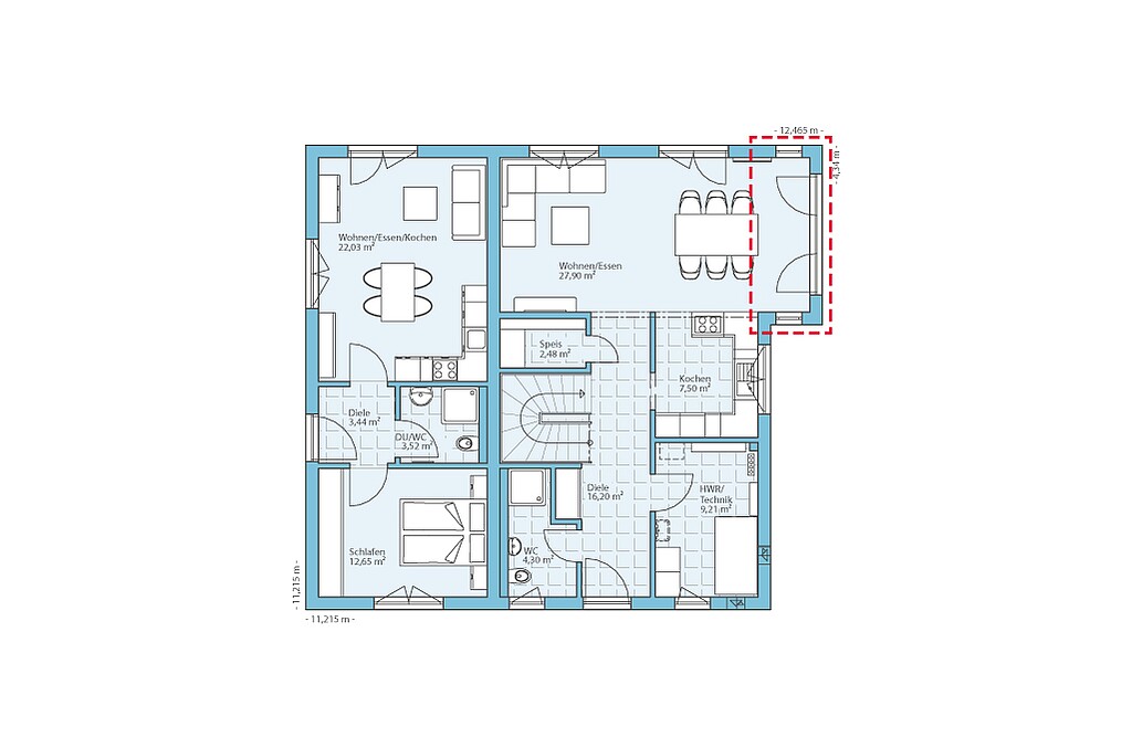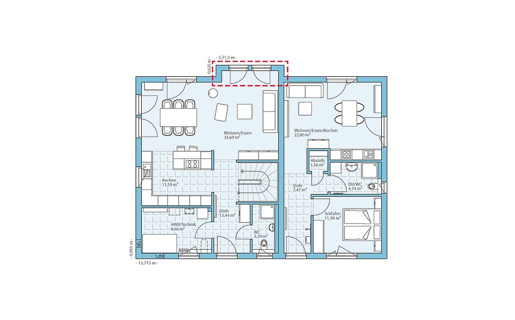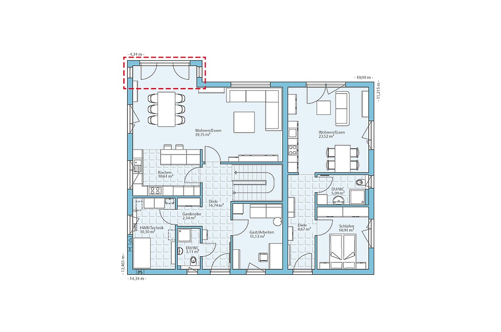 - Sollen beide Einheiten gleichviel Wohnfläche besitzen oder soll es eine größere und eine kleinere Wohneinheit geben?