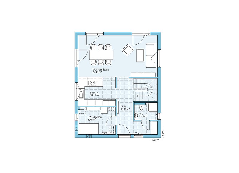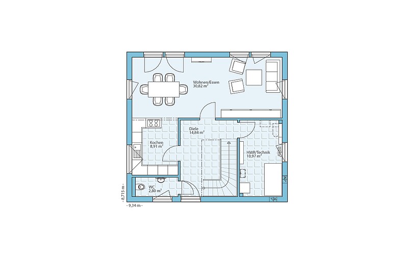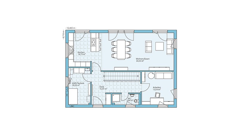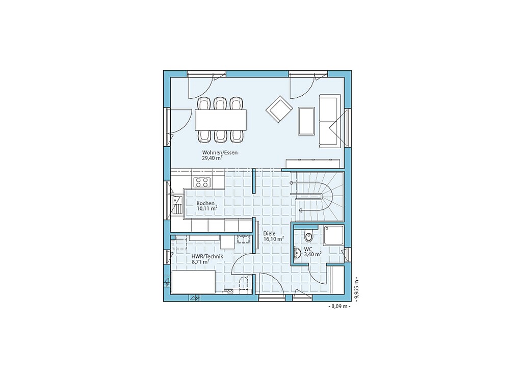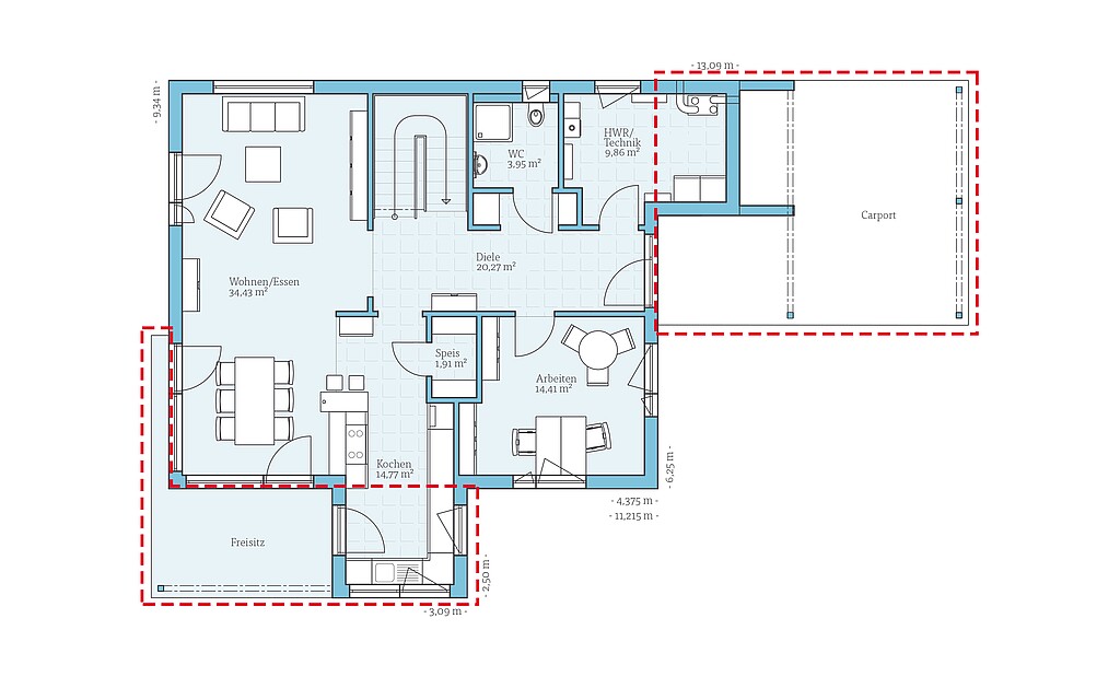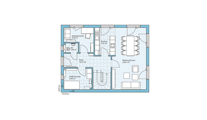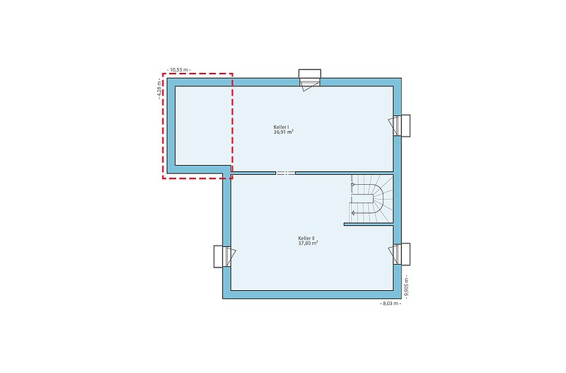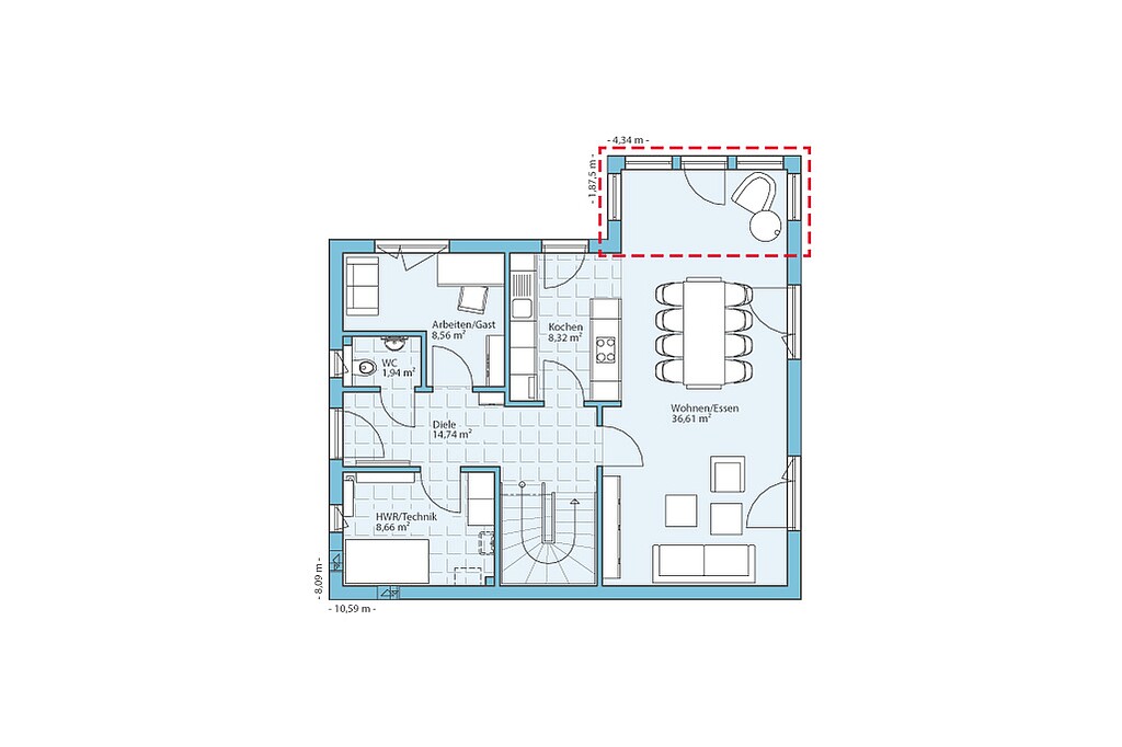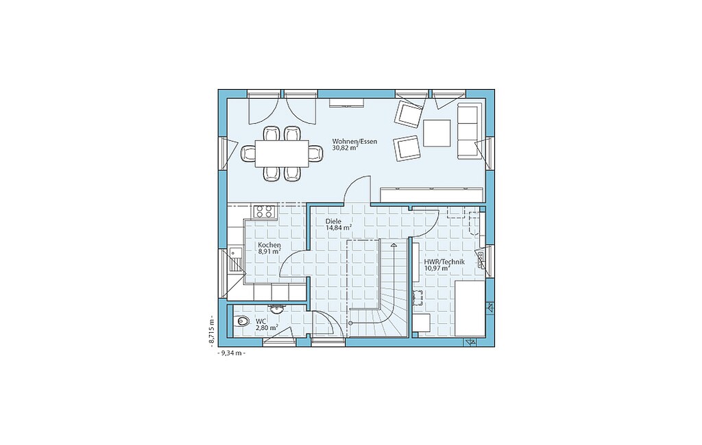 - Aufgrund der zwei Vollgeschosse können Sie auch im Obergeschoss den kompletten Raum sinnvoll nutzen und verlieren durch Dachschrägen keinen wertvollen Raum. Die Zimmer können daher problemlos kleiner geplant werden.