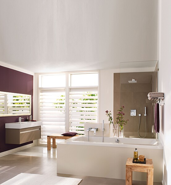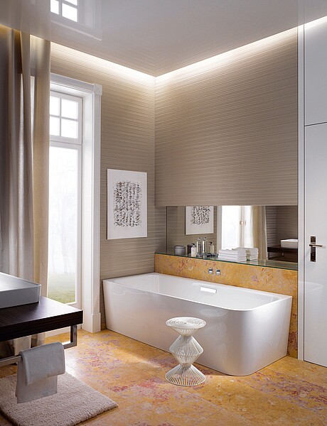 Freuen Sie sich Tag für Tag über die elegante Formensprache von Waschtischen und Badewanne, die ergonomische Gestaltung der Armaturen und die pflegeleichten Oberflächen der Objekte.