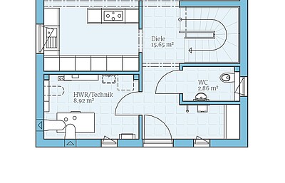 Tür unter TreppeWir wählen eine geschlossene Treppe mit Treppenabgangsverkleidung und einer Tür (nur in der Ausbaustufe Schlüsselfertig möglich).3.035 €3.035 €
