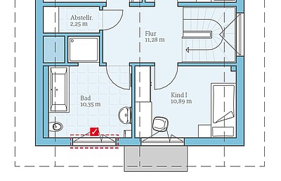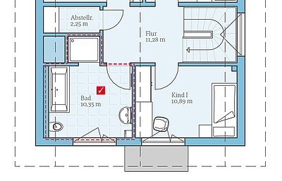 Standard-Badezimmer im DachgeschossWir möchten das Badezimmer so planen, wie es im Standard-Grundriss vorgesehen ist. -