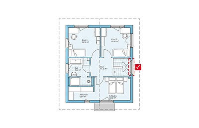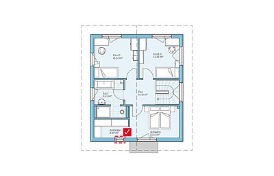 Bei unserer Villa 124 aus der CONCEPT-Line haben Sie die Möglichkeit, die Ankleide zu einer Schranknische umzuplanen und das Bad zu vergrössern. Und wie wäre es mit einer besonders geräumigen Dusche?