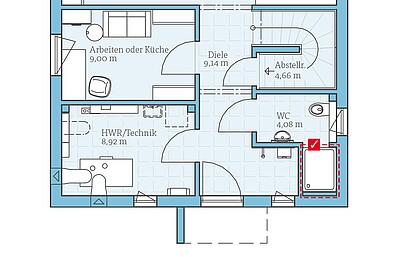 Standard-Gäste-WCWir möchten das Gäste-WC im Erdgeschoss so planen, wie es im Standard-Grundriss vorgesehen ist (ohne Dusche). -