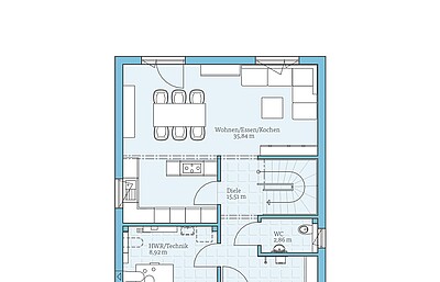Offene Küche oder geschlossene Küche? Oder lieber Platz schaffen für ein Gäste- und Arbeitszimmer? Das Erdgeschoss unserer CONCEPT-Line 124 lässt sich flexibel nach Ihren Wünschen planen.