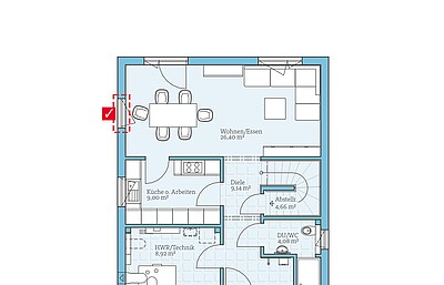 Kein zusätzliches Fenster im ErdgeschossWir behalten die Anzahl der Fenster bei, die im Standard-Grundriss eingeplant ist. -