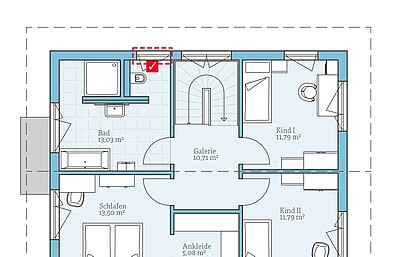 Standard-Badezimmer im ObergeschossWir möchten das Badezimmer so planen, wie es im Standard-Grundriss vorgesehen ist. -