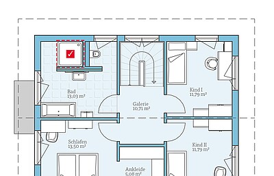 Dusch-Bad statt Gäste-WC im ErdgeschossWir wählen das Dusch-Bad bestehend aus: