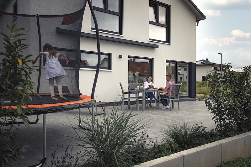 Nach dem Abschluss der Planung verlief auch die Bauphase reibungslos. „Wir waren schon etwas aufgeregt, als dann der Bagger auf unserem Grundstück stand, um die Vorbereitungen für die Bodenplatte zu treffen“, erzählt Herr Fischer. Besonders gerne erinnert sich Familie Fischer an den Stelltermin des Hauses im Juni 2020 zurück: „Es war ein schönes Gefühl, dass da gerade unser Haus aufgestellt wird und die Handwerker und der Bauleiter gerade nur für uns da sind. Insgesamt haben wir uns immer sehr gut aufgehoben gefühlt.“