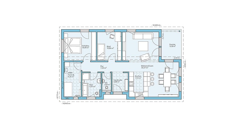 Die Wohnfläche entspricht nicht der Netto-Raumfläche.