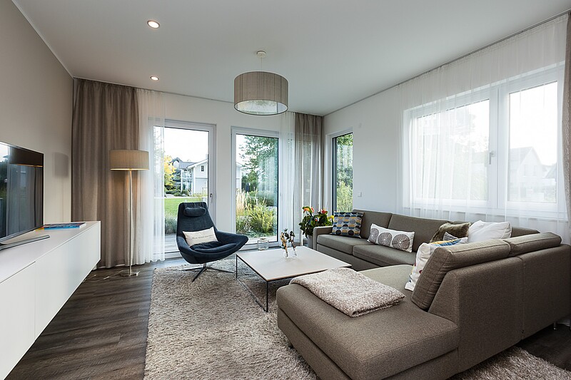Bei einem offen gestalteten Grundriss entstehen grosszügige Räume. Damit aber z. B. ein offener Wohn- und Essbereich nicht ungemütlich wirkt, eignen sich warme Farben, die für eine angenehme Atmosphäre und Geborgenheit sorgen.