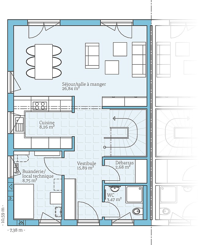 Faites-vous une idée de cette maison à travers les plans d'étage. Nous vous montrerons nos suggestions de planification, qui peuvent bien sûr être modifiées individuellement sur demande.