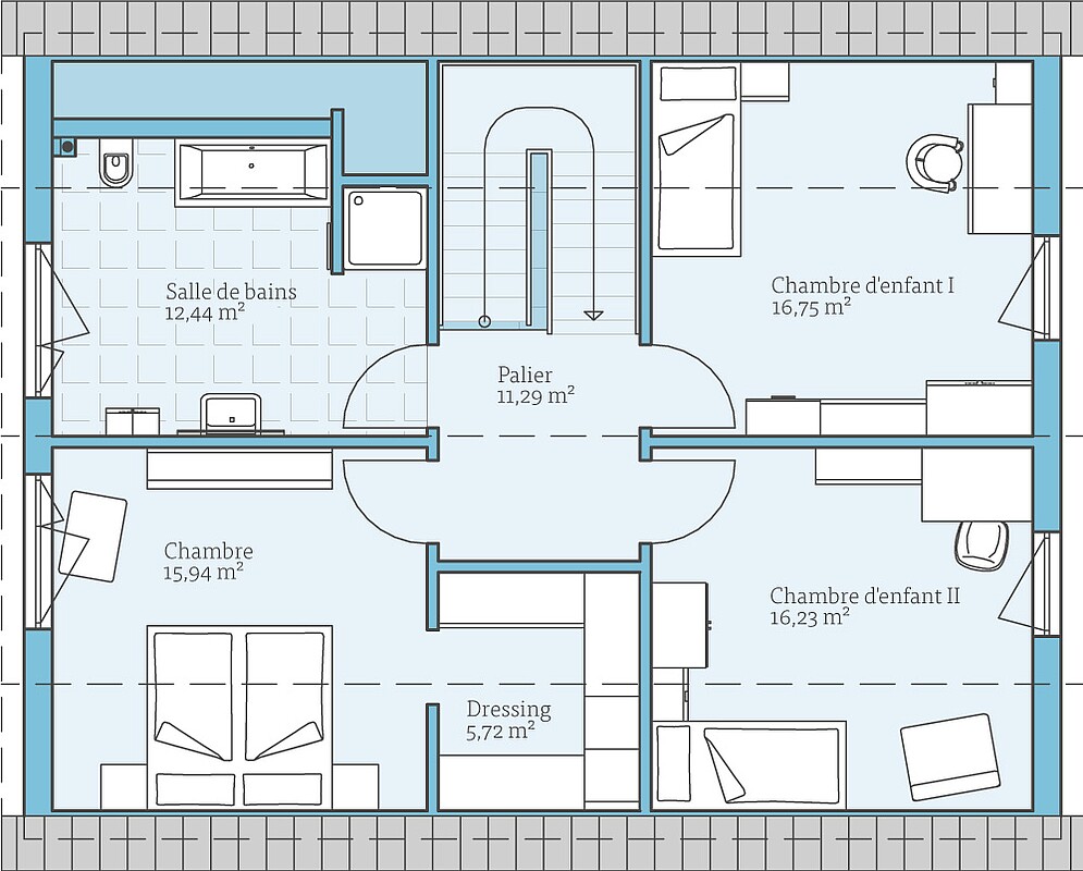 Que faire si l'on a besoin d'un peu plus d'espace sans vouloir pour autant changer tout le plan d'étage ? Chez nous et avec nos maisons, c'est assez simple : grâce aux nombreuses possibilités d'extension, les plans d'étage peuvent être agrandis et de l'espace supplémentaire peut être créé.