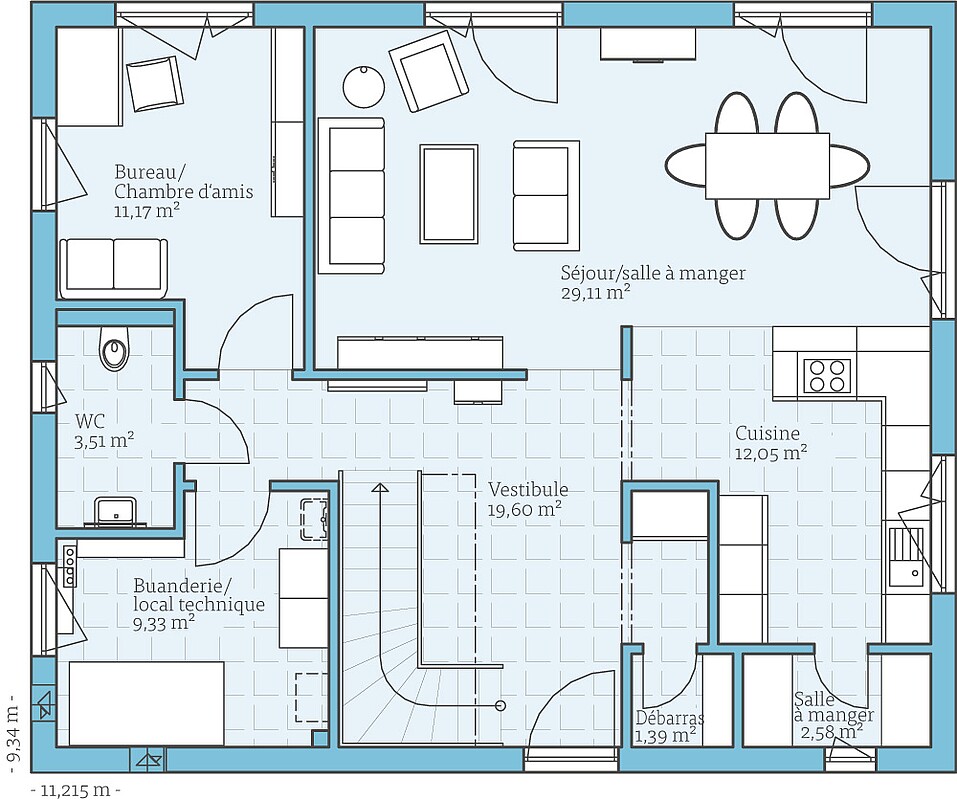 Vous pouvez agrandir ce modèle de plan avec par exemple les éléments de construction suivants :