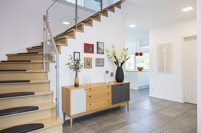 Pour notre maison témoin à Wuppertal, plusieurs modèles de plans sont disponibles. Pourquoi ? Parce que nous pensons qu'une maison avec autant d'élégance devrait convenir au plus grand nombre de besoins et d'usages variés qui soit. Qu'il est question d'habiter et de travailler sous le même toit, d'une maison individuelle avec un appartement indépendant ou de quatre chambres d'enfants, les possibilités sont très variées.