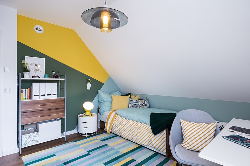 Ses plus de 175 m² et la modularité de son plan de niveau apportent au modèle Variant 45-175 un véritable atout. Avec un pignon traversier en option, il y a de la place pour trois grandes chambres d'enfants rien qu'au dernier étage. Si le bureau du rez-de-chaussée est également réaménagé en chambre pour enfants ou pour parents, l'habitat peut en un rien de temps être transformé en une maison pour une grande famille de six personnes. De nombreux espaces de rangement, un dressing séparé, de vastes espaces pour se mouvoir et se déplacer, ainsi que la deuxième douche optionnelle incluse au niveau WC du rez-de-chaussée offrent les meilleures conditions qui soient pour faciliter le quotidien et le rendre plus pratique.