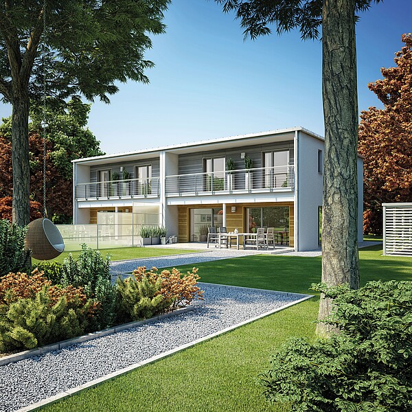 Voici à quel point les maisons jumelées peuvent être multi-facettes de nos jours. Nous proposons des concepts d'habitation avec des toits à pignon, mono-pente, en croupe et plats. Pour la meilleure entente qui soit avec le voisinage !