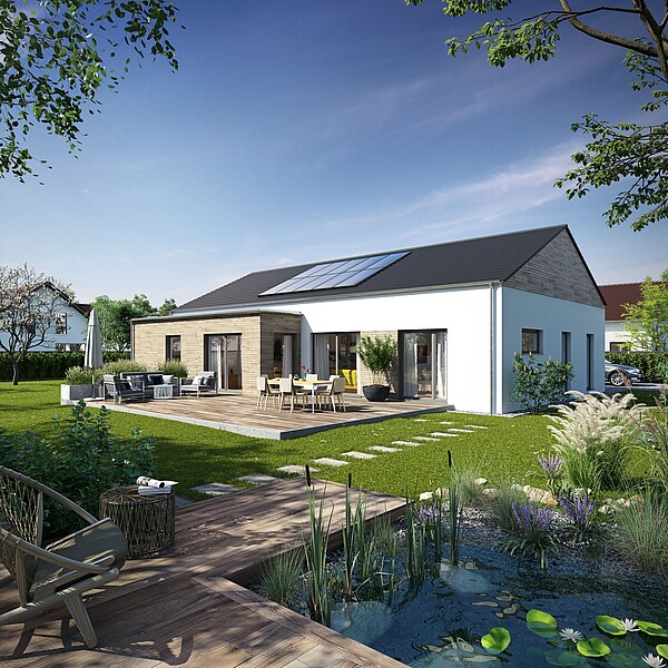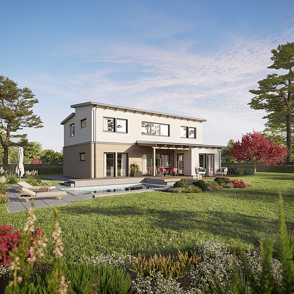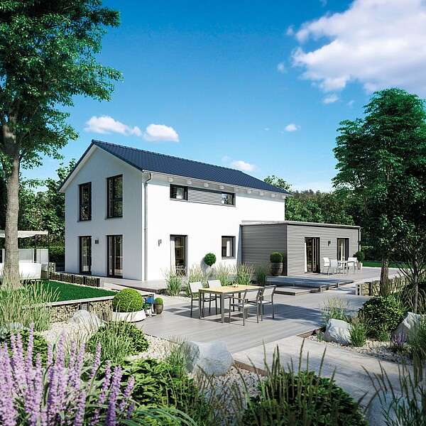 Questi concetti abitativi preconcettualizzati sono una base ideale per pianificare la propria casa e possono essere modificati individualmente. Le viste e le planimetrie mostrano solo un suggerimento. Il design esatto risulta dalle planimetrie del vostro ordine individuale e dalla descrizione della costruzione e dell'attrezzatura che avete scelto. Lasciatevi ispirare dalle diverse possibilità di pianificazione.