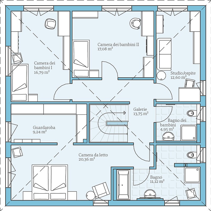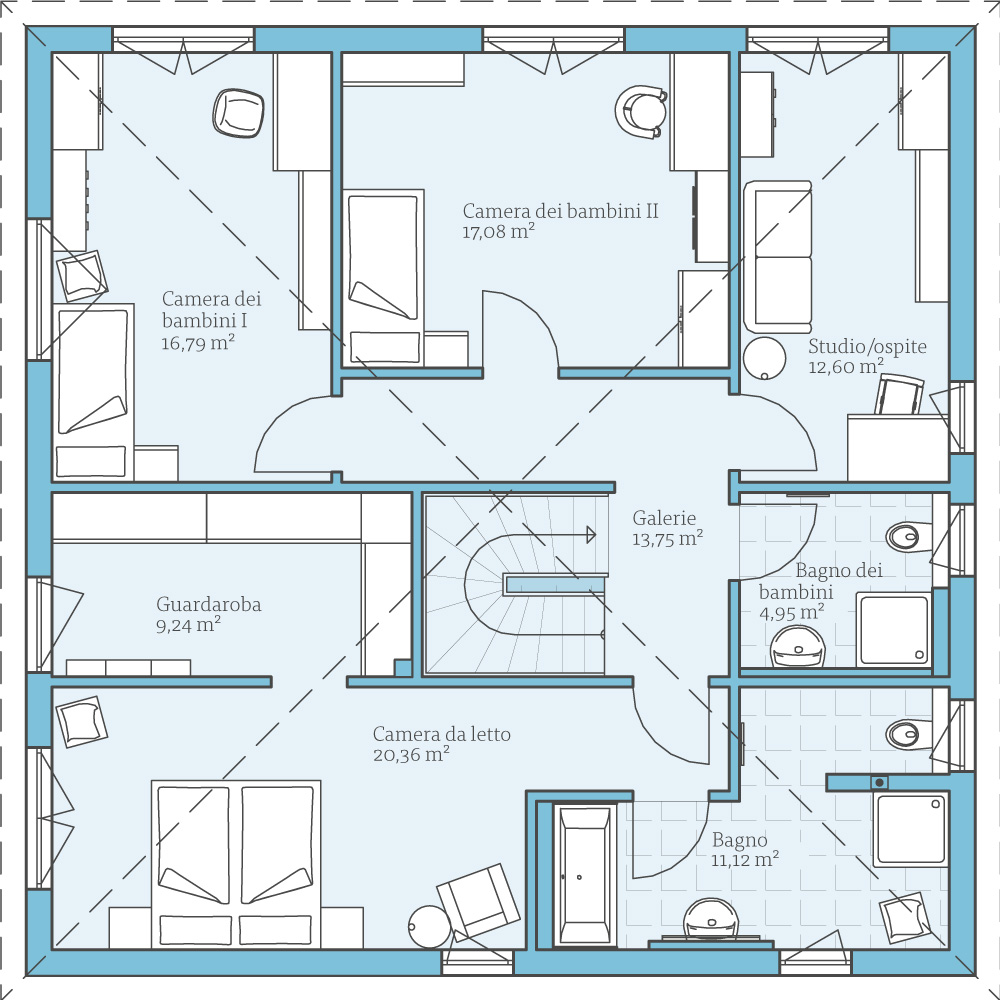 Fatevi un'idea di questa casa con gli esempi di planimetrie. Vi mostriamo le nostre proposte di progettazione, che naturalmente possono essere modificate individualmente su richiesta.
