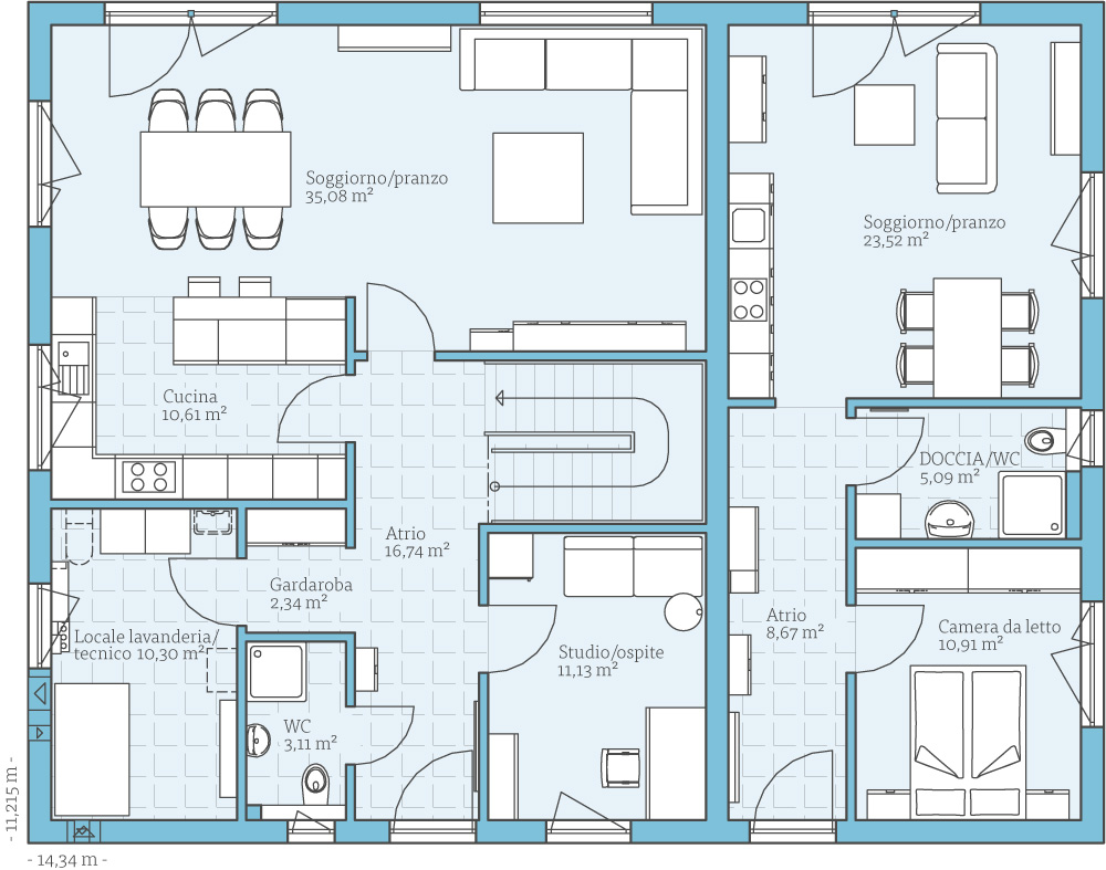 Fatevi un'idea di questa casa con gli esempi di planimetrie. Vi mostriamo le nostre proposte di progettazione, che naturalmente possono essere modificate individualmente su richiesta.