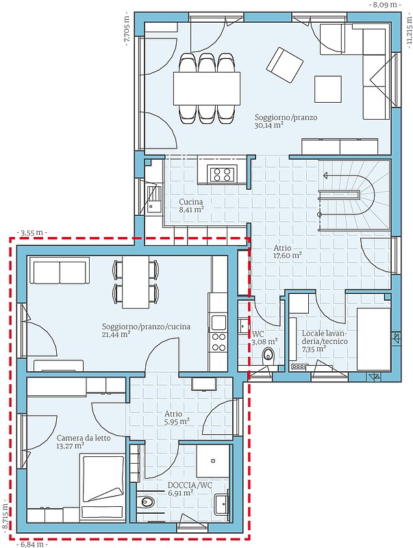 | Superficie abitativa appartamento principale | 127,55 m² |