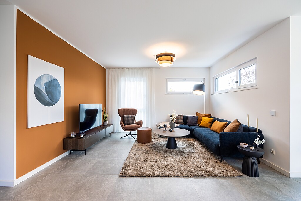Il pianoterra è caratterizzato soprattutto dall’area living, pranzo e cucina. Il bovindo opzionale con ampie finestre crea spazio per una zona pranzo particolarmente luminosa e accogliente.