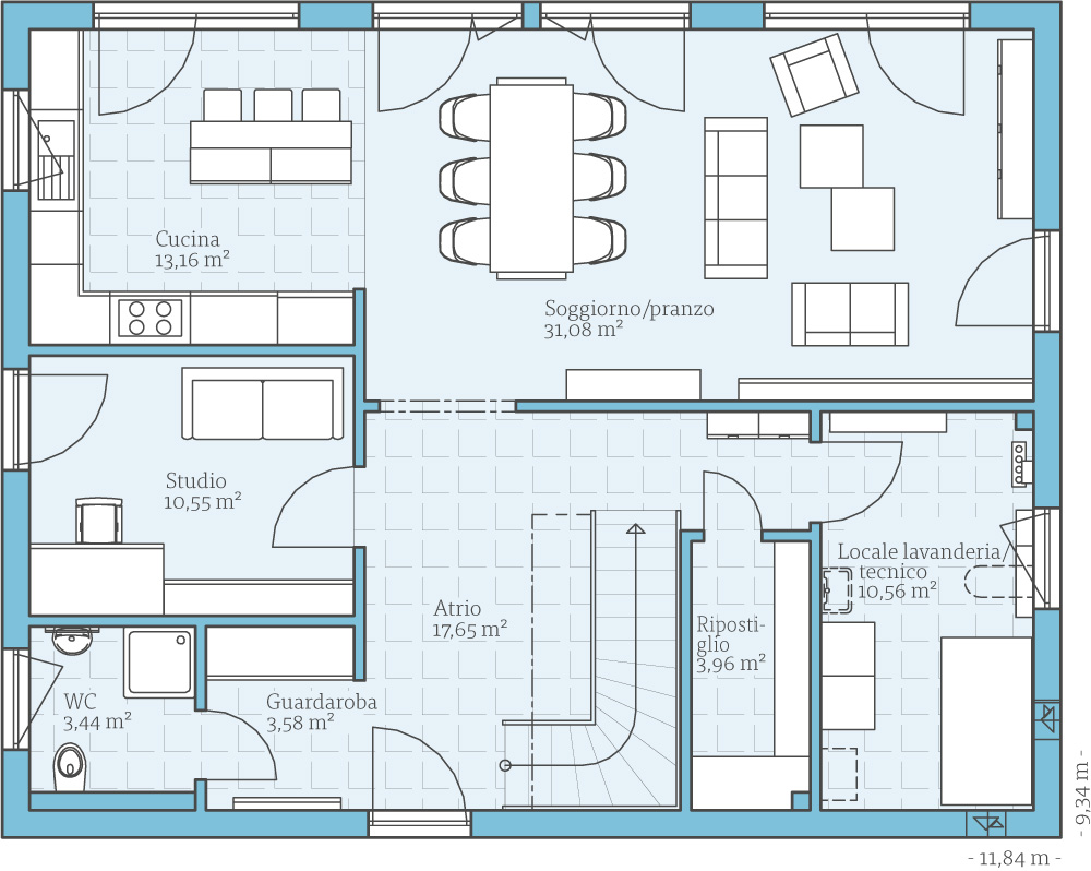 Fatevi un'idea di questa casa con gli esempi di planimetrie. Vi mostriamo le nostre proposte di progettazione, che naturalmente possono essere modificate individualmente su richiesta.